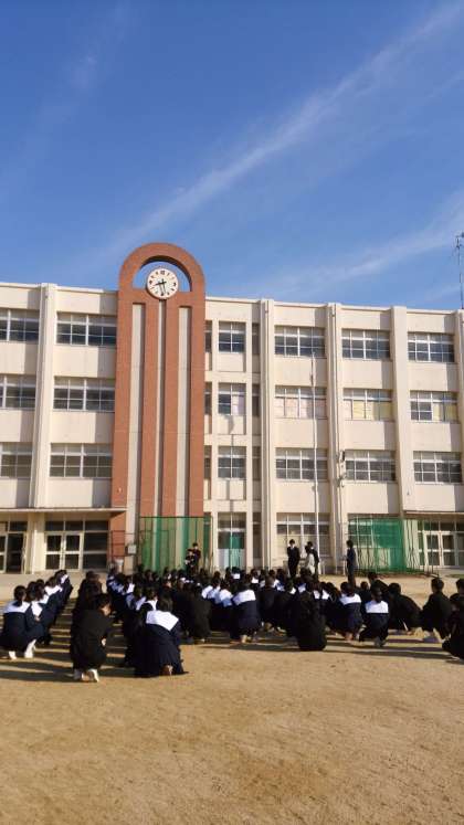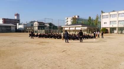 1年生の学年集会では、各種委員会での今月の目標を話しています。