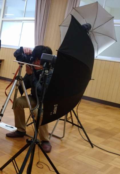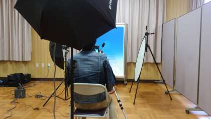 緊張した面持ちで、高等学校願書用の写真を撮っています。