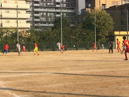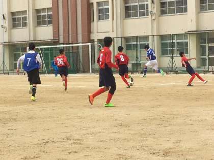 サッカー部は昨日、友渕中学校で練習試合をし、本日は本庄中学校で、三国中学校と市岡東中学校と練習試合をしています。