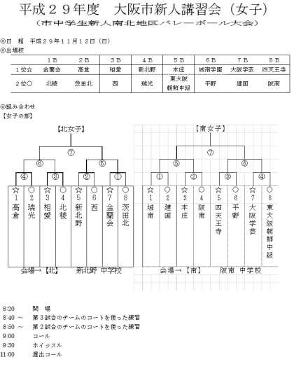 南北地区大会の抽選結果を添付しましたので、よろしくお願いします。