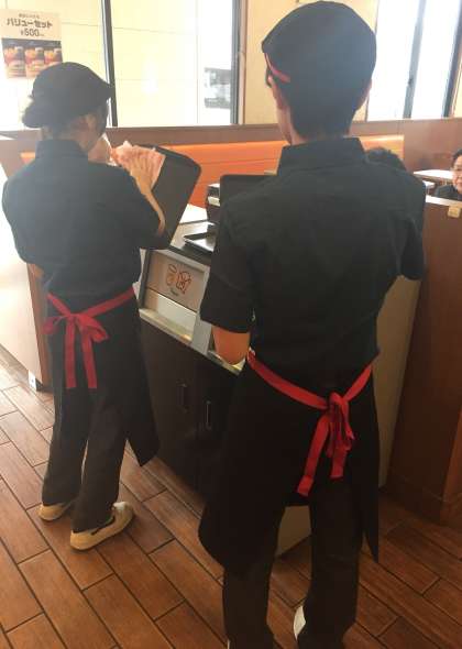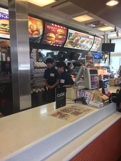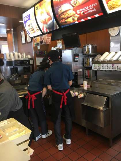 ファストフード店ではユニフォームを借りて雰囲気出ています。