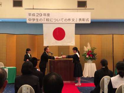 本日、KKRホテルにて行われました、平成29年度 中学生「税についての作文」の表彰が行われました。