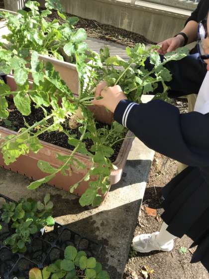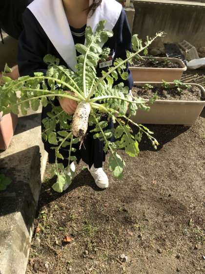 特別支援学級では、園芸作業をしています。今回は大根の収穫です。
