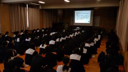 3年生は、進路指導主事の先生から、高校進学についてのお話を受けています。