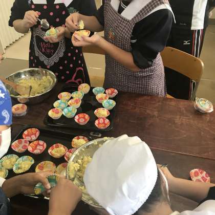 特別支援学級で収穫したサツマイモを使って、スイートポテトを作っています。