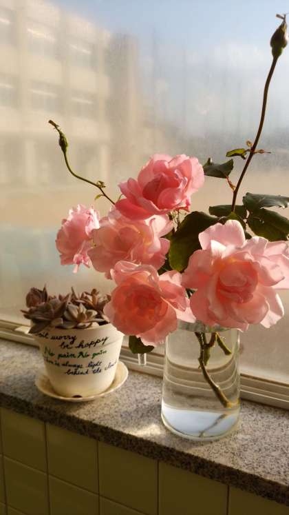 薔薇の花も活けられ、校舎内外に沢山の花の香りが漂っています。