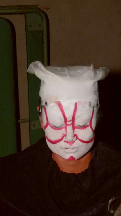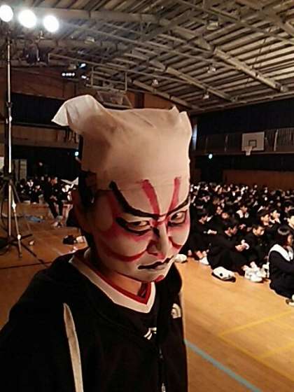体育の先生が「隈取」の体験をしています。