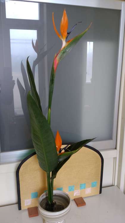校長室前に「極楽鳥花」