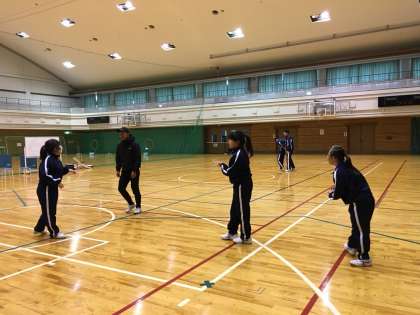 体育館に入って、走り回っています。