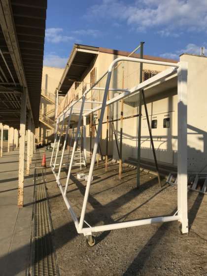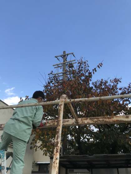 数日前から管理作業員の方にお願いして、サッカーゴールの錆を落としていただいています。