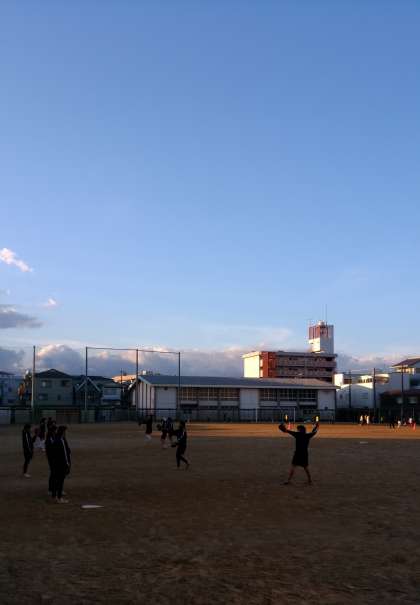 北側ではソフトボール部が、南側ではサッカー部が活動しています。