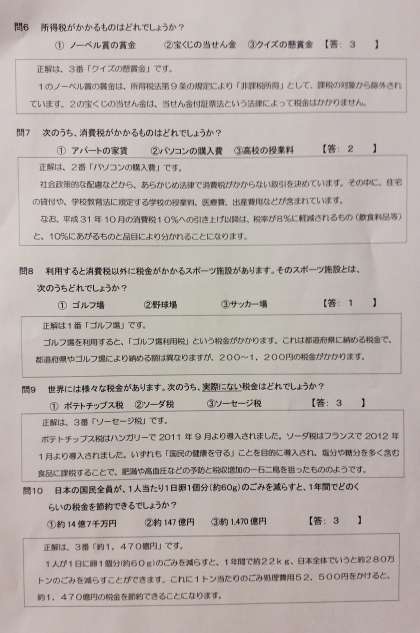 写真は、出されたクイズ形式の税の質問に、答えを考えているところです。
