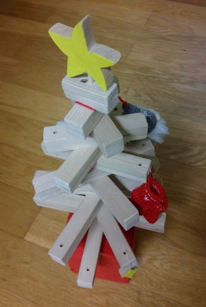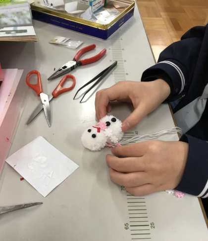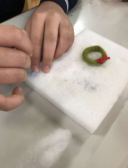 家庭科部は木製のツリー用のオーナメントを作っています。
