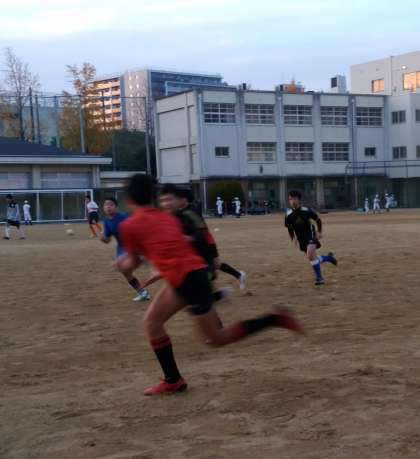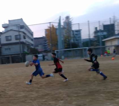 ラグビー部はパスの練習から組織的な動きにつながる練習をしています。