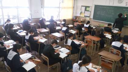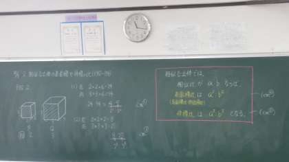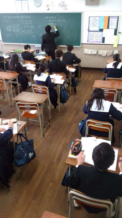 数学の授業では面積比と体積比を学習しています。平方と立方、その比を理解していきます。