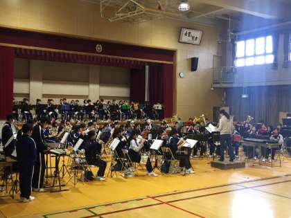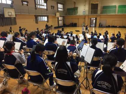 本日、吹奏楽部は玉津中学校で、来週の東成区クリスマスコンサート練習中をしています。