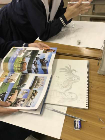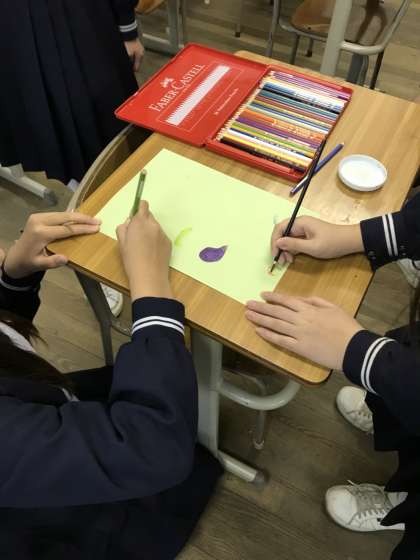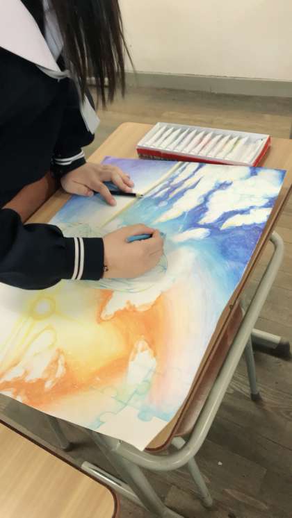 美術部の活動です。ファイバーカステルを使って作品作りしています。