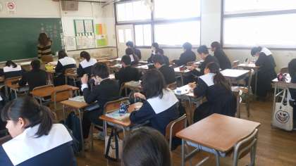 今日は「国語」授業の進め方や時間の使い方、生徒一人一人の違った問題で敬語を口にしてみるというアクティビティな展開は、とても日常的で、興味を持って授業に参加している生徒の姿が見て取れます。
