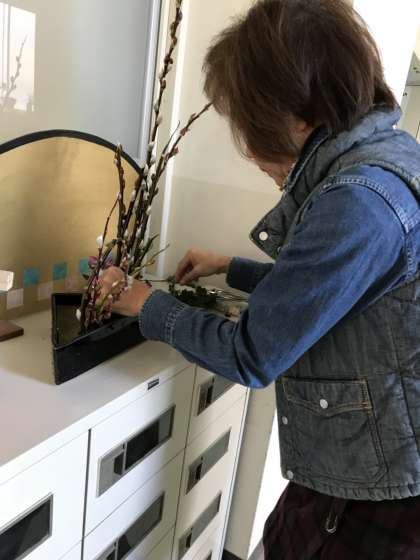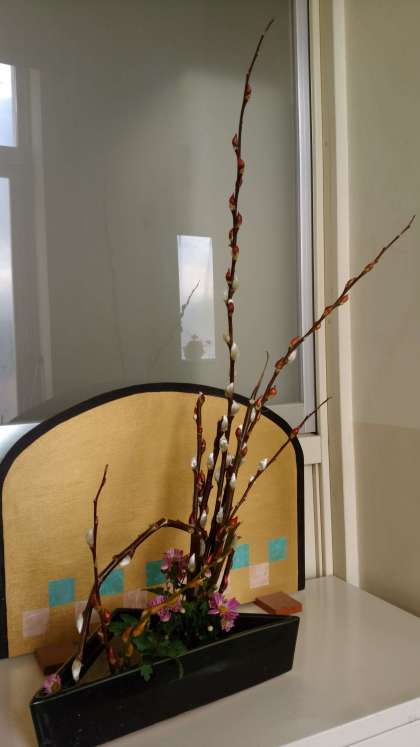 このお流儀は、「柳の水くぐり」といい、「臥龍梅(水くぐりの梅)」と同意で、春の雪解けで河川が増水し、川岸に生えた柳や梅をなぎ倒していく。一度折れた枝が地に根付き、また芽吹くという力強い意味を持っています。