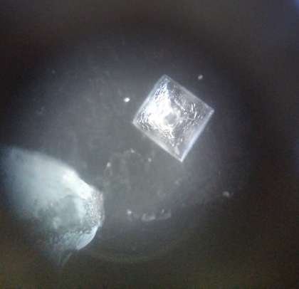 酸とアルカリの水溶液を混ぜ、ガスバーナーであぶり、蒸発させて塩の結晶を作ります。