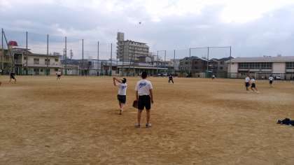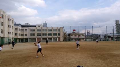後半は、男子がソフトボール、女子がキックベースボールを行っています。