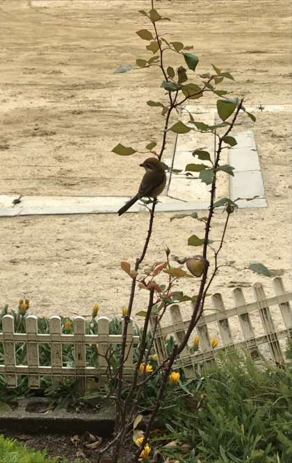 グラウンドにあるハーブ園にお客様が舞い降りてきました。ウグイスなのか、何なのかは判別できませんが、怖がることもなくのんびりと過ごしていってくれました。