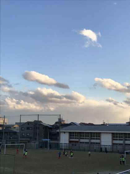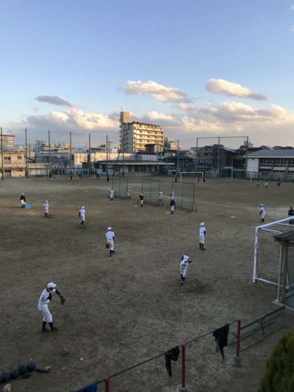 グラウンドの西側では、サッカー部と野球部が練習をしています。