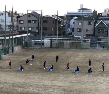 今日は、ラグビー部が合同練習で出ているので、ソフトボール部はグラウンドの東側を広く使っています。