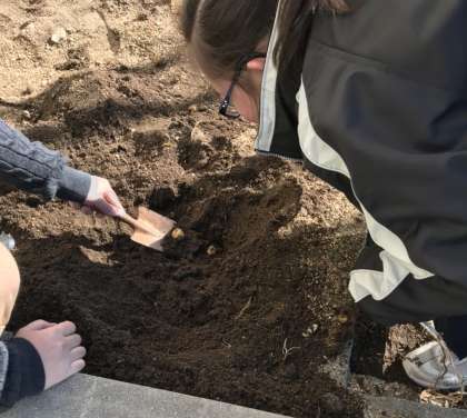特別支援教室の生徒が、芋ほりをしてくれています。