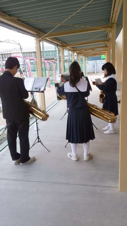 この季節もパートに分かれて練習をしています。このパートの定位置ですが、外の練習は手がかじかんでしまいます。