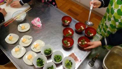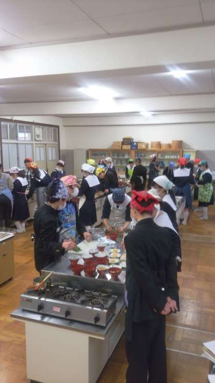 今日は1時間で調理実習をしています。
