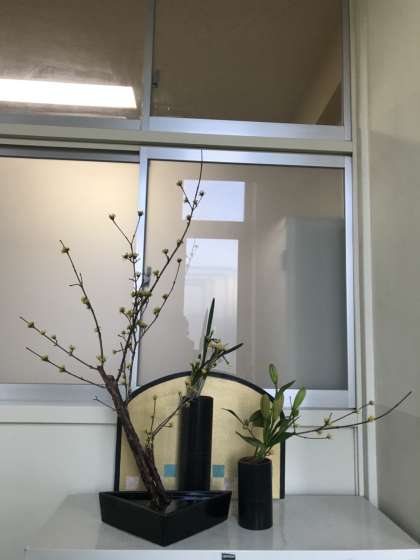 今日もまた校長室前の活花が変わりました。