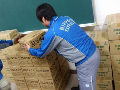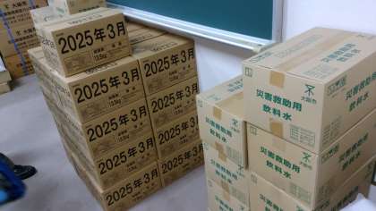 災害避難所である本庄中学校には、避難時に必要な物資が備蓄されています。