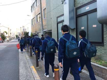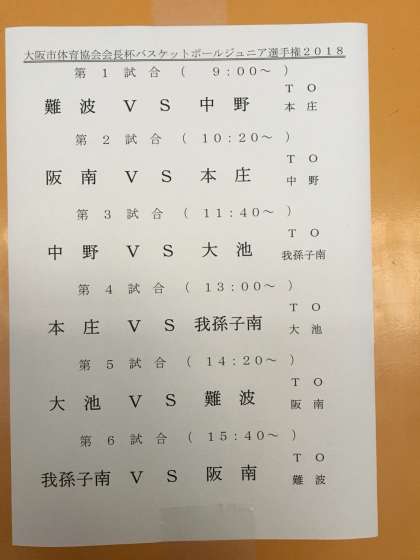 本日、難波中学校で行われますバスケットボール大会に参加します。