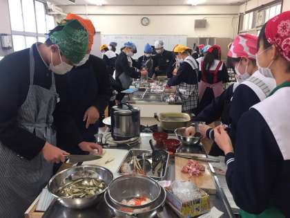 家庭科では調理実習をしています。