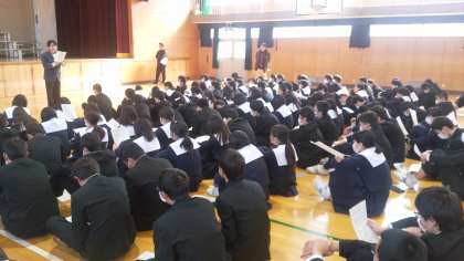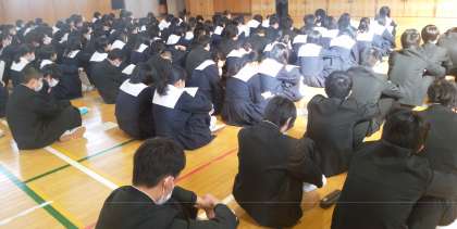 明日の私立高校入学試験に向け、事前指導を受けています。