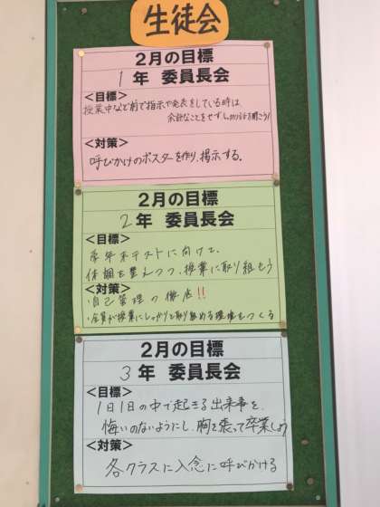 先日行われました各種委員会で、それぞれの目標が決まりました。