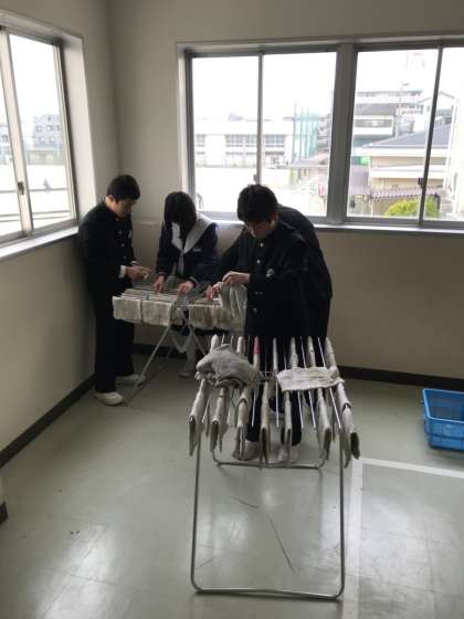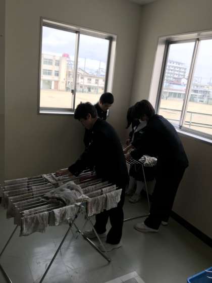 ふきふきキャンペーンの雑巾干しをしてくれています。