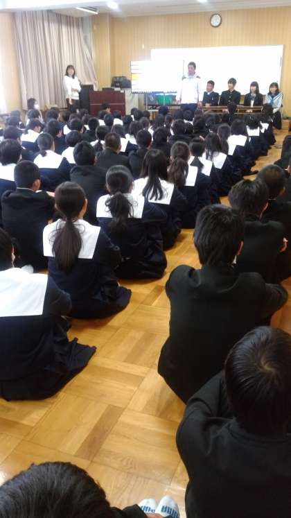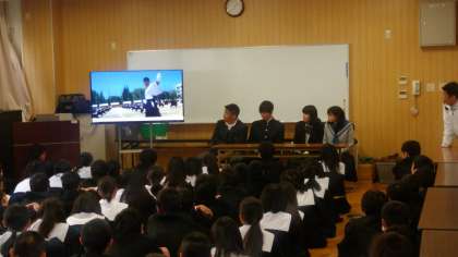 本日、2年生は、卒業生に来ていただき、高等学校ってどんなところかということを教えて頂いています。