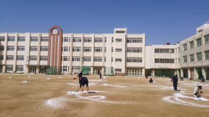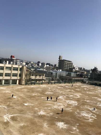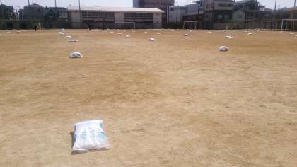 本日は午後から時間があったので、日ごろグラウンドを使ってりる部活動部員でにがりを撒いています。