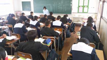 担当の先生の朗読を、リズムを感じ、込められた思いを促ながら、静かに聞いています。