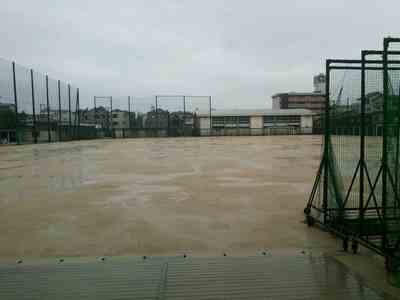 昨年はグラウンド周辺の排水が追い付かず,本館1Fの廊下まで水が入りかけていた。