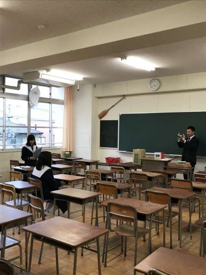 英語の授業で使うためビデオ撮影をしています。即興で協力してくれた生徒の皆さん。ありがとうございました。