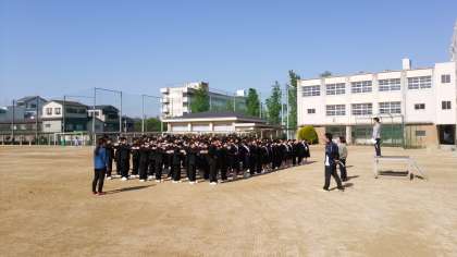 1年生はグラウンドで、今日も整列の練習をきっちりと行ないました。早く中学生としての意識を持ってほしいところです。