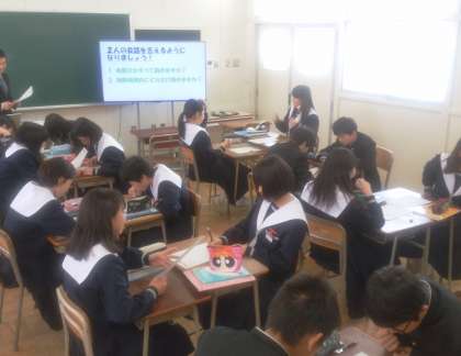 英語の授業では、ICT機器の活用もしますが、とにかくしゃべります。英語でどんどんしゃべります。