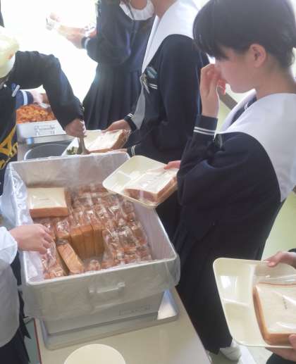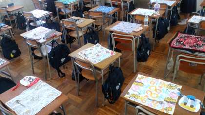 教室ではランチョンマットを敷いて配膳準備に備えています。
