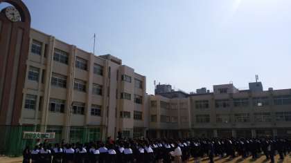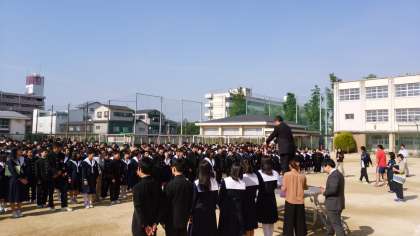 生徒会からのお知らせです。自分たちのなかから、目標を決めようと思いますので、考えておいてください。なお、決まった目標をキャップアートにますので、ペットボトルキャップの回収にご協力お願いします。