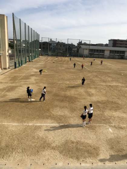 本校のグラウンドは、ラグビーやサッカーの公式戦のできるほどの広さですので、今日はソフトボールがとても広くグラウンドをつかえています。