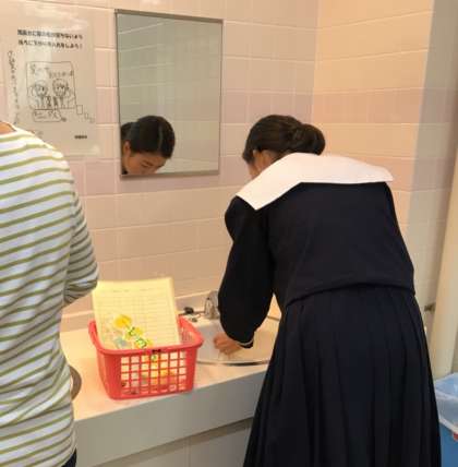 その後、保健委員会では、手洗い場の石鹸の交換をしました。