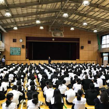 労わり、助け合う、優しい心がいじめを防ぐことに繋がるという内容に、生徒の皆さんはとても真剣に聞き入っていました。